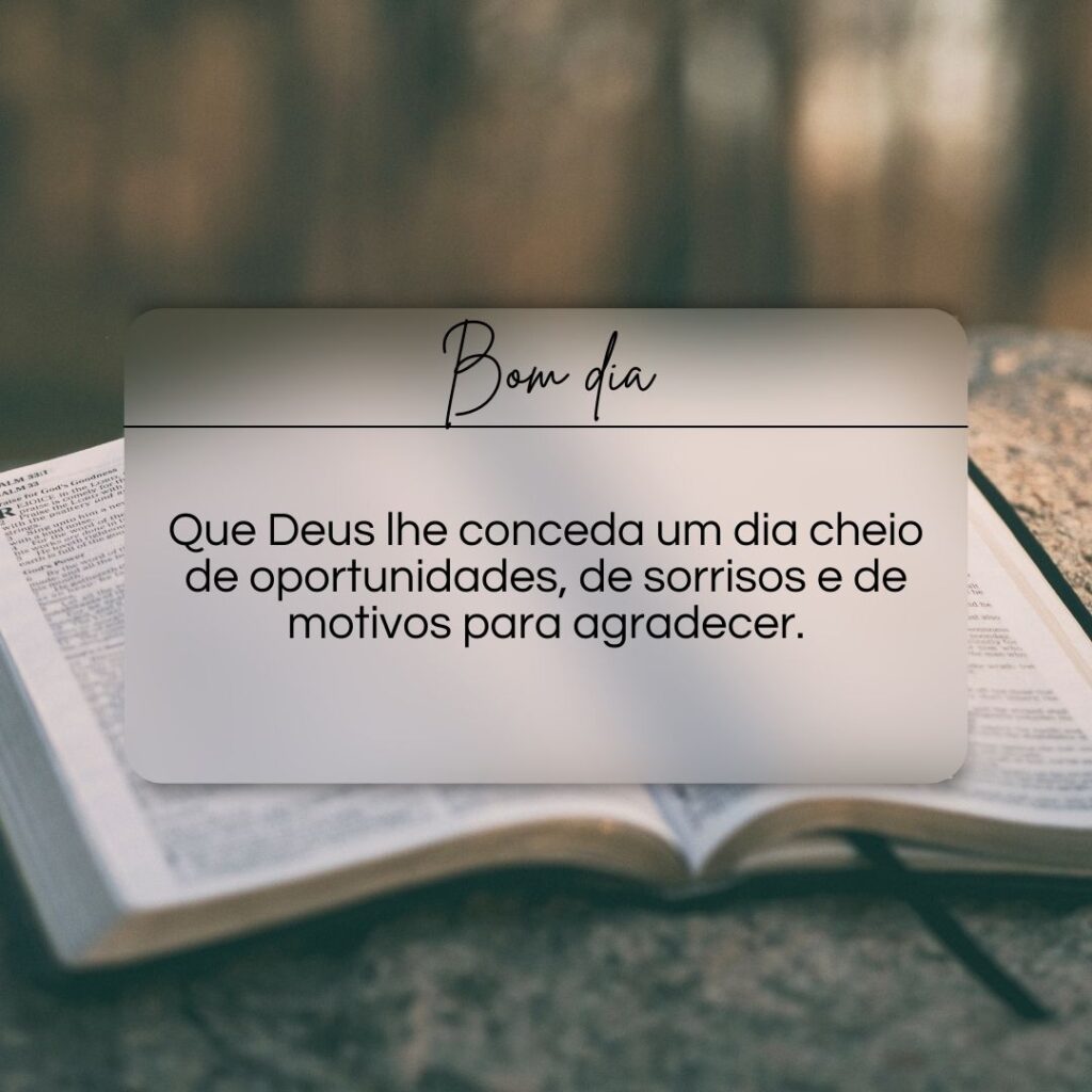 Bom Dia! Sabe aquele sentimento bom de começar o dia com uma mensagem que toca o coração? No nosso site, você vai encontrar mensagens de bom dia de Deus para WhatsApp que vêm acompanhadas de imagens lindas, feitas para inspirar e aquecer a alma. Imagina enviar uma dessas mensagens e fazer alguém sorrir logo cedo, sentindo a presença divina e a beleza do amanhecer. Vamos juntos espalhar a fé, a esperança e o amor de Deus, compartilhando essas mensagens especiais. Que tal dar uma olhada e começar o seu dia e o de quem você ama com uma dose extra de luz e paz?